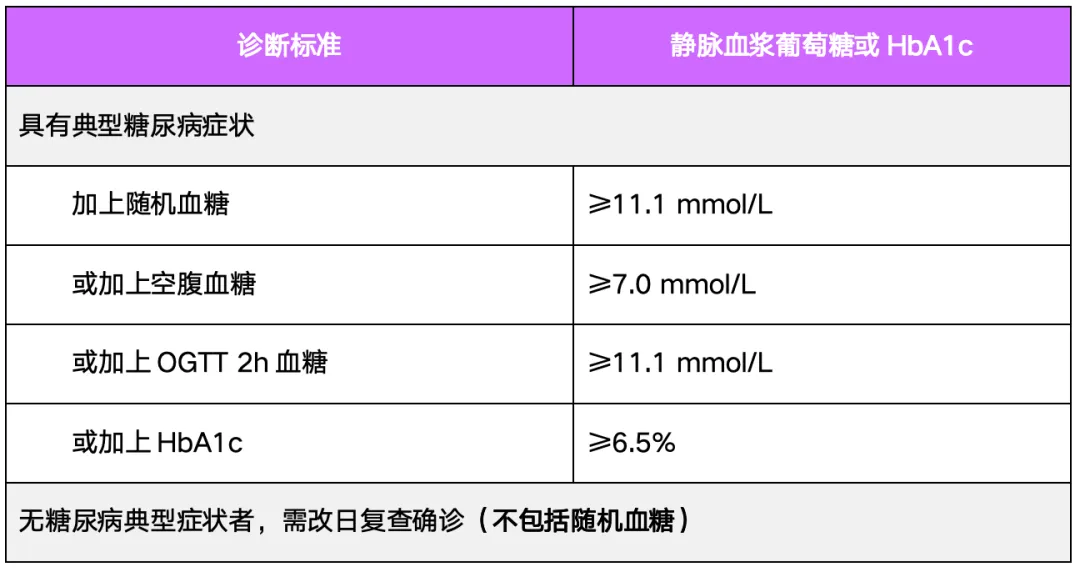 糖尿病诊断标准: