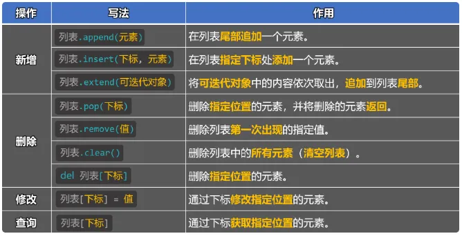 列表用来存放一组有序的数据,并且可以对其中的数据进行增删改查。