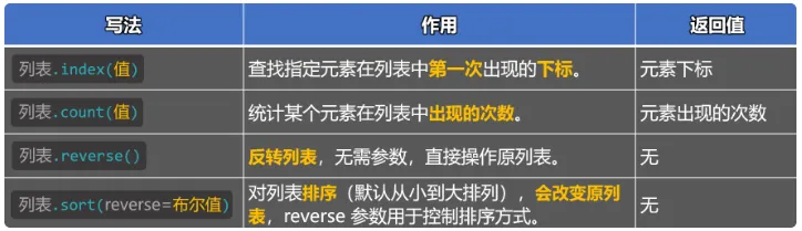除了上面的增删改查的方法,列表还有很多其他常用的方法: