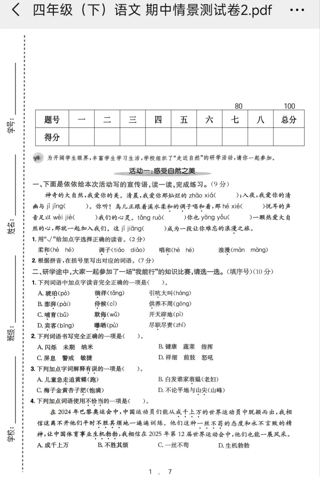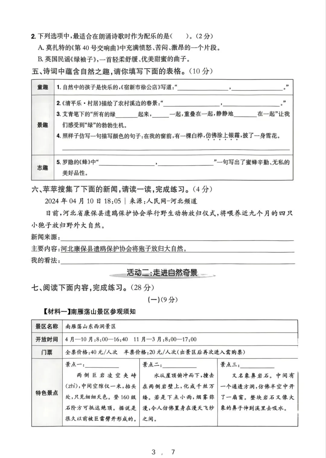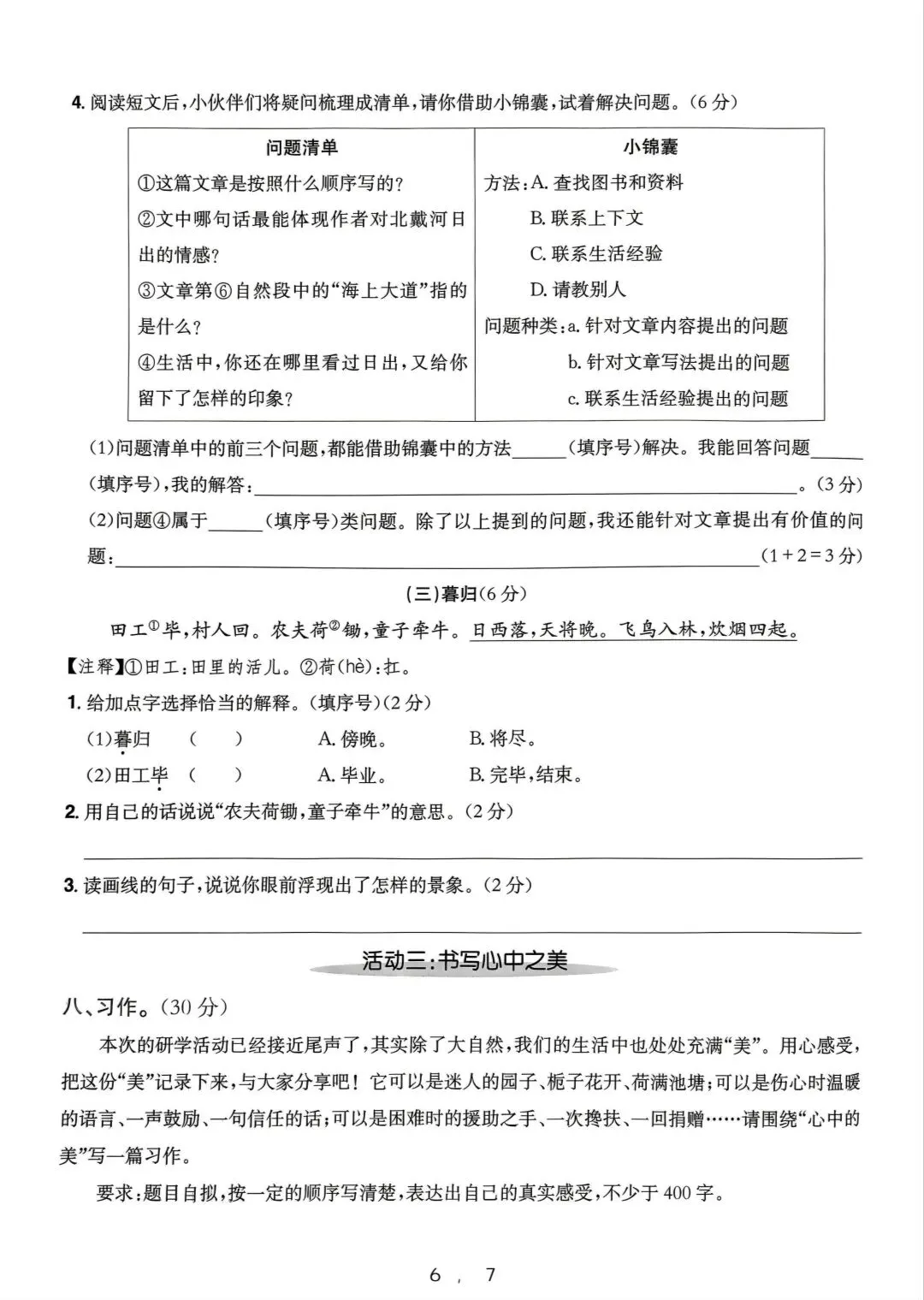 【2026初中语文学习资料】初中语文阅读理解答题模板电子版可打印网盘下载