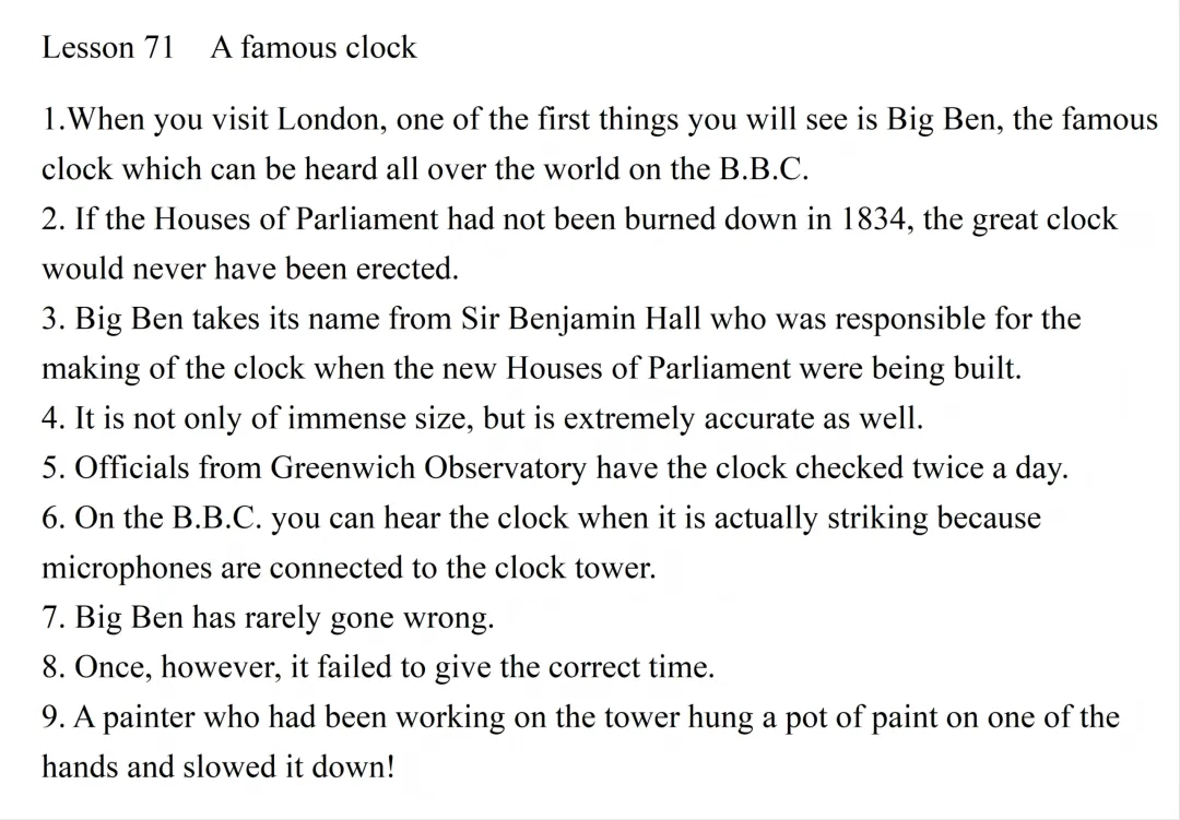 原文:Big Ben has rarely gone wrong. 大本钟很少出故障。
