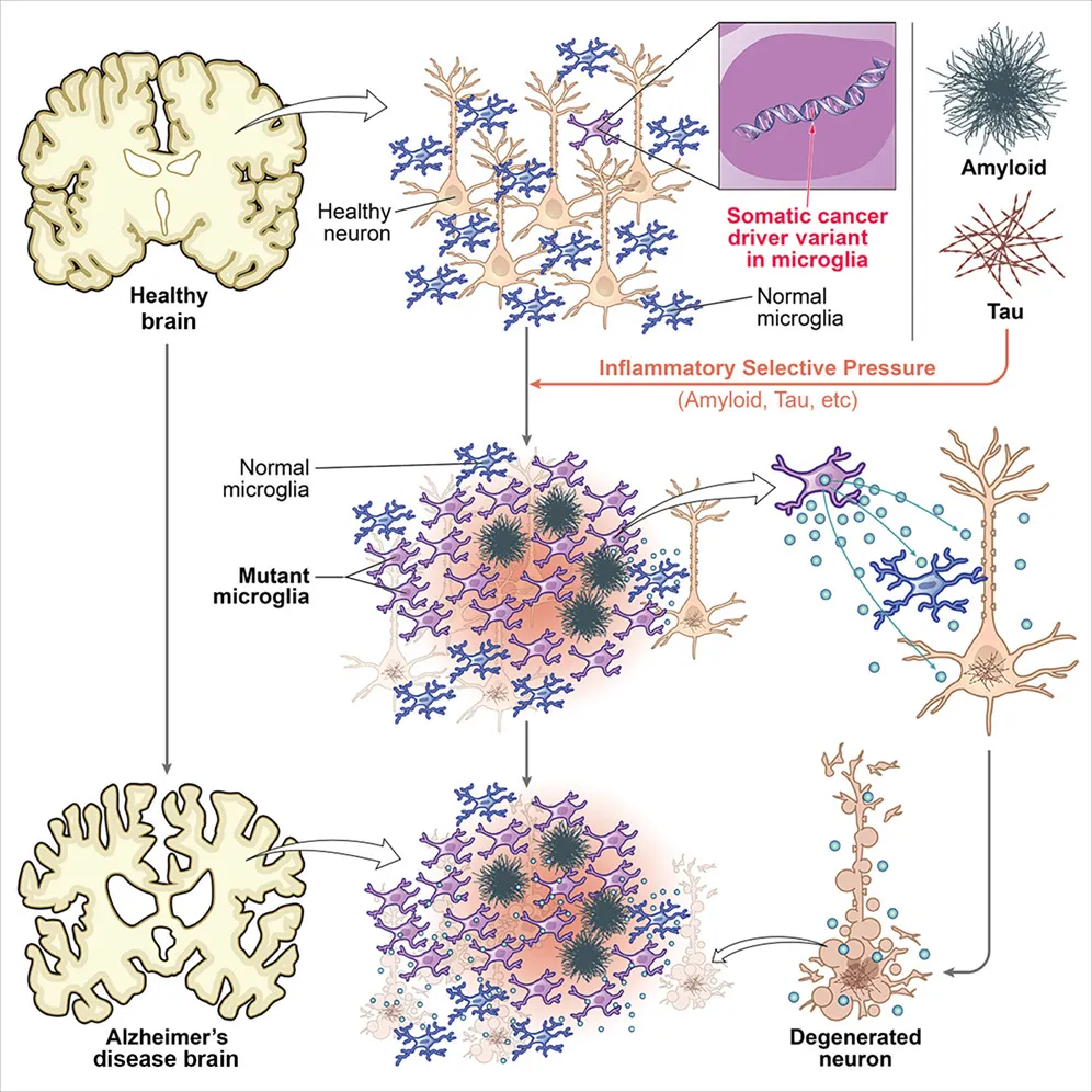 标题:Somatic cancer variants enriched in Alzheimer's disease microglia-like cells drive inflammatory and proliferative states