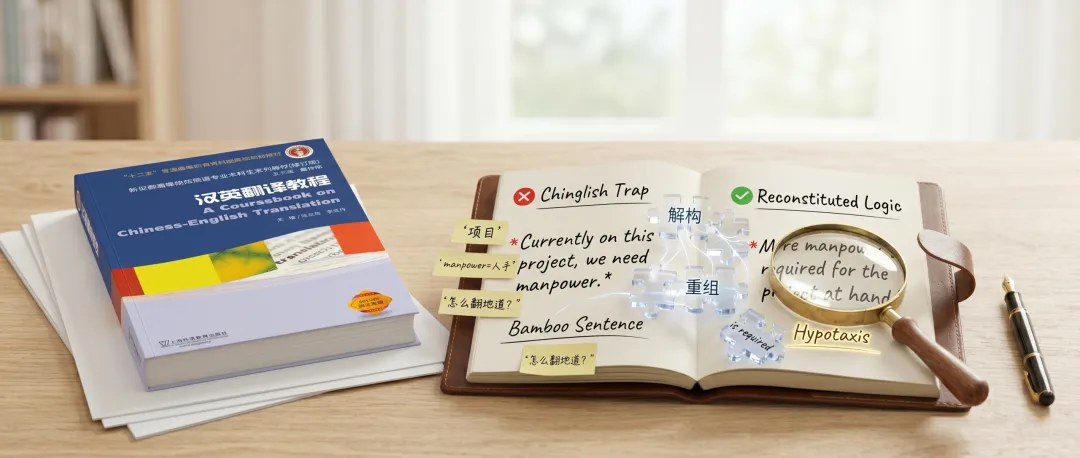 朋友们早上好,这里是陪你持续精进的“泡泡糖的研习社”。我是你们的专属导学。回顾这几个月的研习之旅,我们一起刷过外刊、练过口译、甚至开启了二外新地图。很多同学的英语“输入(听和读)”能力已经炉火纯青。但是,当面临“输出”时,尤其是需要把一段中文写成英文(如工作邮件、项目推介、论文摘要)时,绝大多数人都会陷入深深的自我怀疑。想象一下这个极其常见的场景: 中文说:“目前在这个项目上,我们需要投入更多的人力。” 你的大脑第一反应是不是逐字翻译:“Currently on this project, we need to put in more manpower.”虽然老外能看懂,但这句话透着一股浓浓的“塑料味”。因为你掉进了一个最可怕的陷阱:用中文的骨架,套上了英文的词汇外壳。这就是传说中的“中式英语(Chinglish)”。如果不解决底层逻辑的差异,你背再多的高级词汇,写出来的依然是一堆没有灵魂的“拼凑句”。今天,我们要为大家请出国内英语专业本科生的核心骨干教材,带你从根源上治愈“中式英语”的顽疾——《汉英翻译教程》(修订版),上海外语教育出版社,陈宏薇、李亚丹主编。(ISBN:9787544655538)认清真相:中文是“竹节”,英文是“葡萄藤”