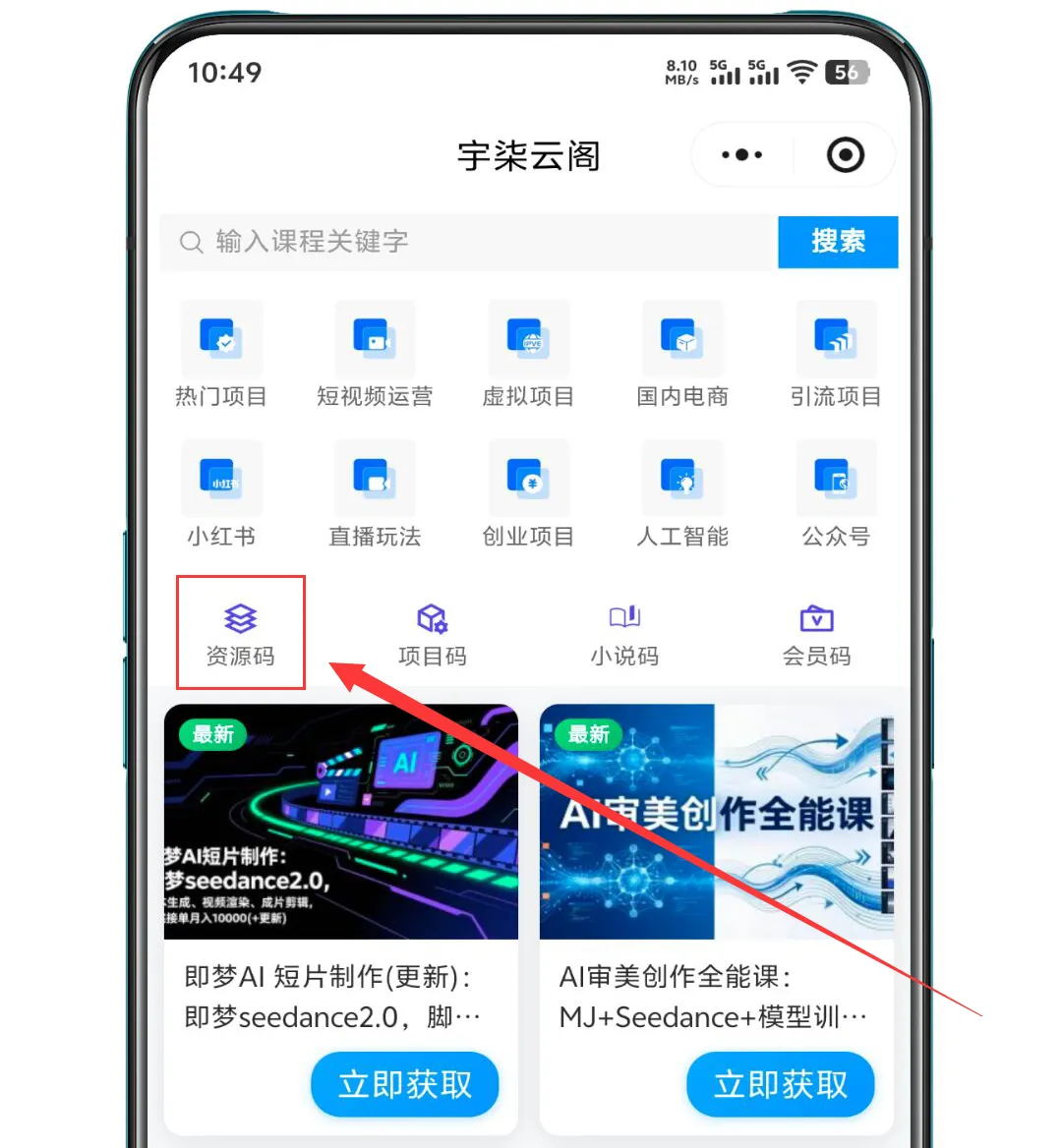 将对应资源码输入并进行获取即可
