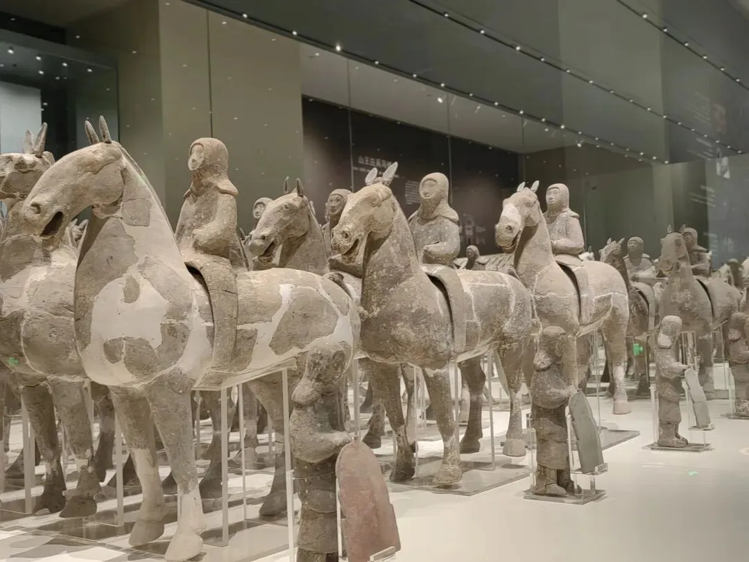 2、独特价值:不同于秦俑的战争场面,它以贵族生活与出行为核心,是全国罕见的西汉综合性俑坑,陶阙、门房等建筑模型在西汉陪葬坑中首次发现 。陶俑高20–50厘米,彩绘艳丽,骑兵俑戴风帽式头盔,步兵身披铠甲,人物神态自然,部分面部施朱砂、白土彩绘。齐国,蔓延800年历史,是春秋五霸,也是战国七雄之一,从管仲的经济改革到晏婴的处世哲学,从巧夺天工的牺尊到森严有序的军阵俑,古人的智慧从未过时。下一站,仿佛看到邯郸博物馆的战国马,想到胡服骑射的赵武灵王,一代雄主的命运终局。