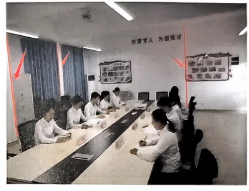 【举例】以下面这张照片为例,场景是会议室,背景中的屏幕和窗户出现了透视畸变,显得歪斜不平,形成了一种倾斜的T字形状,给观众带来不舒服的感觉。