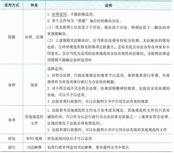 由于我国行政法规范制定主体多元、等级效力不一、数量繁多,法院需要明确哪些规范可以作为适用对象,以及如何取舍、选择。
