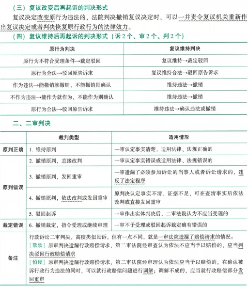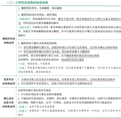 (2)裁判形式:驳回诉讼请求、撤销、确认违法、确认无效、不作为判决等
