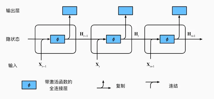 vanilla RNN 结构图片引用:https://zh.d2l.ai/chapter_recurrent-neural-networks/rnn.html