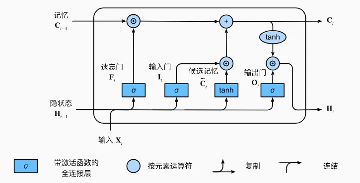 LSTM 结构图片引用:https://zh.d2l.ai/chapter_recurrent-modern/lstm.html
