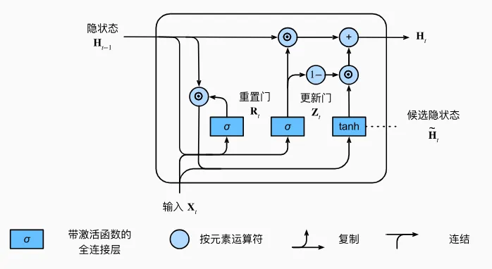 GRU 结构图片引用:https://zh.d2l.ai/chapter_recurrent-modern/gru.html