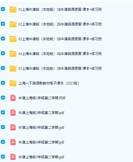 《上海1-5年级下册 语数英电子课本+一课一练+学霸笔记》