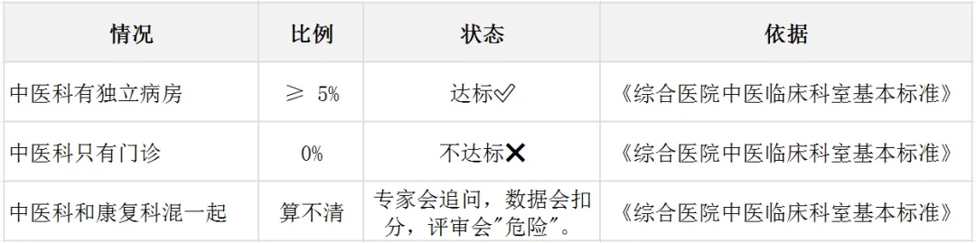 床位不能少:中医科的床位数必须 ≥ 全院总床位的5%,这是“入场券”。