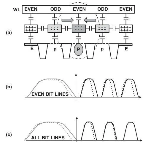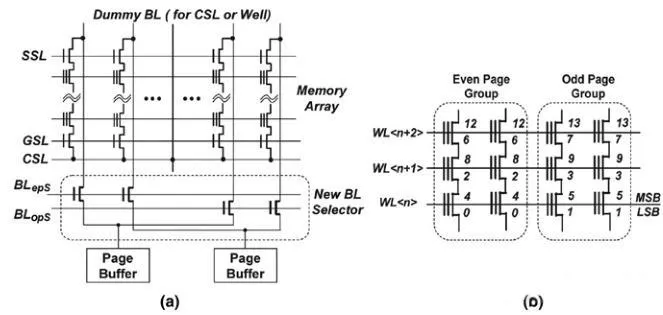 前面提到,传统的NAND采用奇偶屏蔽的BL设计。在读取操作时,奇偶BL相互屏蔽,每次只能读取其中之一,因此,通常一对奇偶BL共享一套数据闩锁。此架构限制了写入和验证必须分奇偶BL进行,增加了同一WL上写入操作的时长。而随着Cell微缩,写入干扰越来越严重,影响NAND可靠性。