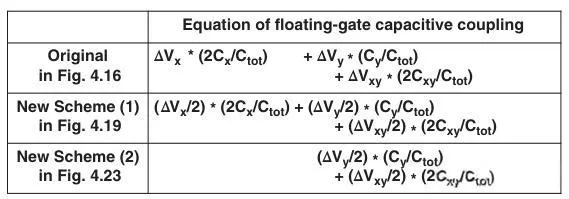 文末的表中有FG电容耦合的近似公式。可以看到,在原始写入方法中,或者减小寄生电容,或者减少周围Cell中写入Vt的移动量,都可以缓解FG耦合造成的影响。