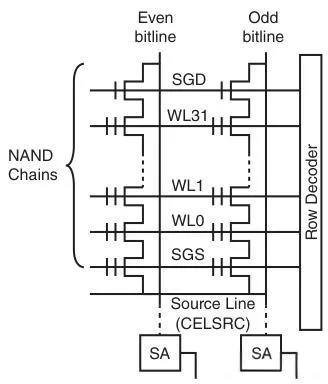在2008年提出的ABL架构下,奇偶BL都有自己的灵敏放大器Sense amplifier (SA) ,且从电压检测改为电流检测。在ABL架构下,同一WL上的BL能同时写入和读取,比传统奇偶BL架构多一倍。因此,ABL架构将写入时长减少一半,相应的干扰施压时长减半,可靠性提高。另一方面,因为奇偶BL是同时写入的,所以它们之间没有写入干扰,FG-FG的干扰作用减轻。