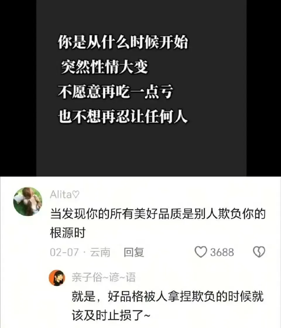 关于生存;读书和自律是中层,关于认知;行善和独处是高层,关于境界;止怒和止怨,是顶层,关于情绪。攒钱改运是因为物质地基决定选择半径,早睡续命是因为身体资本是一切账户的余额;读书开悟是用他人的经验穿透自己的迷障,自律破局是用秩序对抗熵增的侵蚀;行善积德是向外释放善意以拓宽能量回路,独处修心是向内凝聚专注以沉淀生命重量;止怒避祸是切断愤怒引发的连锁崩塌,止怨得福是转化怨气为改变的动力。