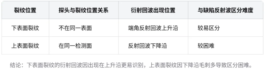 上下表面裂纹衍射回波特点