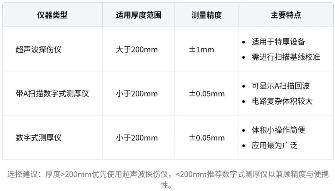 - 超声波测厚基于脉冲反射原理,需根据厚度范围选择合适的仪器并严格校准。