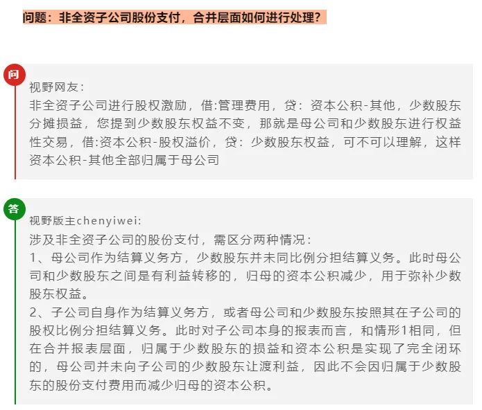 【CPA业务探讨】非全资子公司股份支付,合并层面如何进行处理