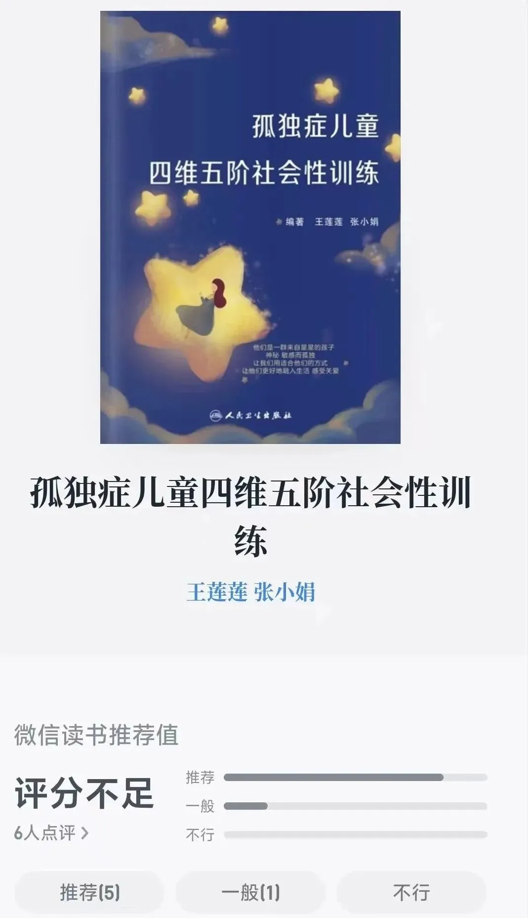 王莲莲. 张小娟.《孤独症儿童四维五阶社会性训练》. 人民卫生出版社. 2021年王莲莲