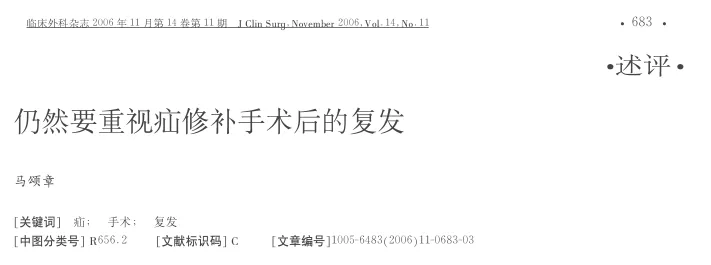 马颂章. 仍然要重视疝修补手术后的复发[J]. 中国实用外科杂志, 2006, 26(11): 683-685.