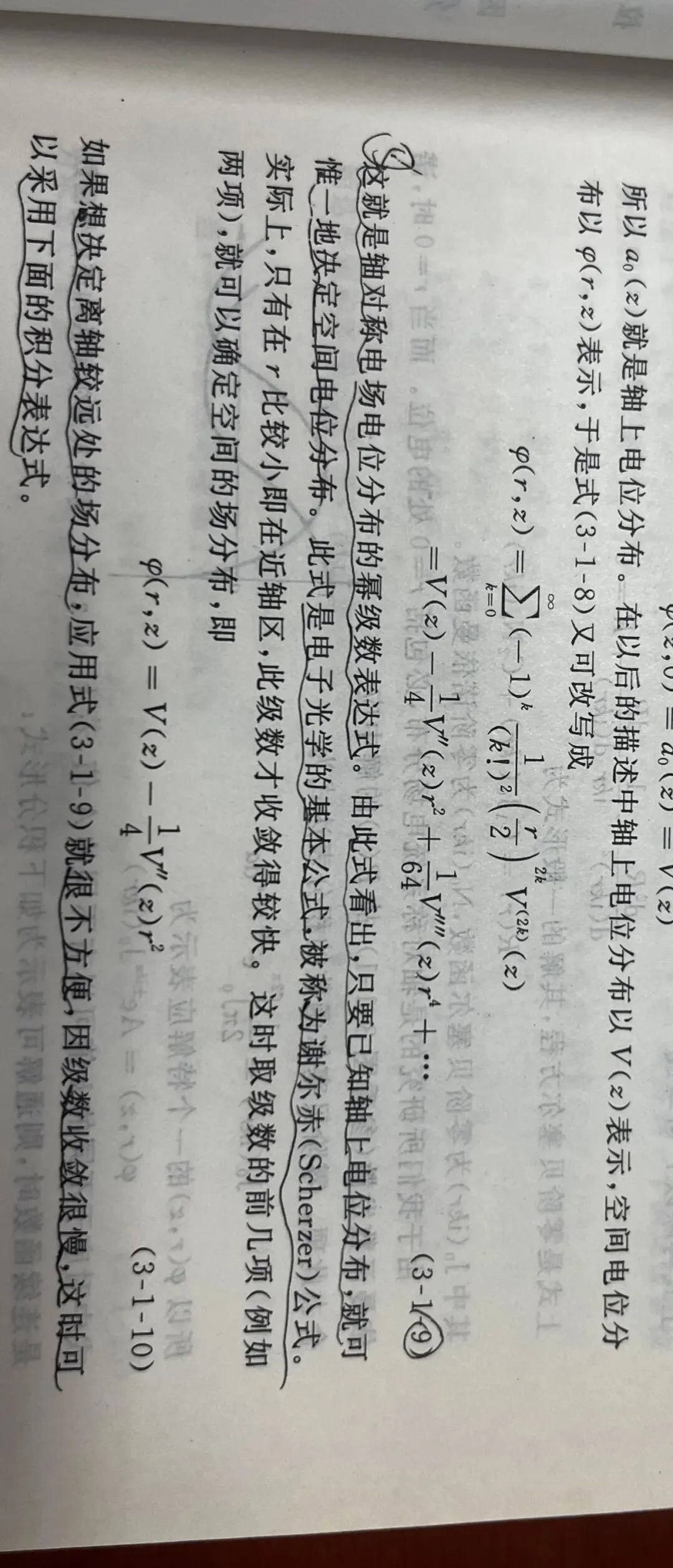 5、由轴对称电场电位分布的幂级数表达式,只要已知轴上电位分布,就可以唯一地确定空间电位分布。这是电子光学的基本公式,被称为谢尔赤公式。(参考图式)