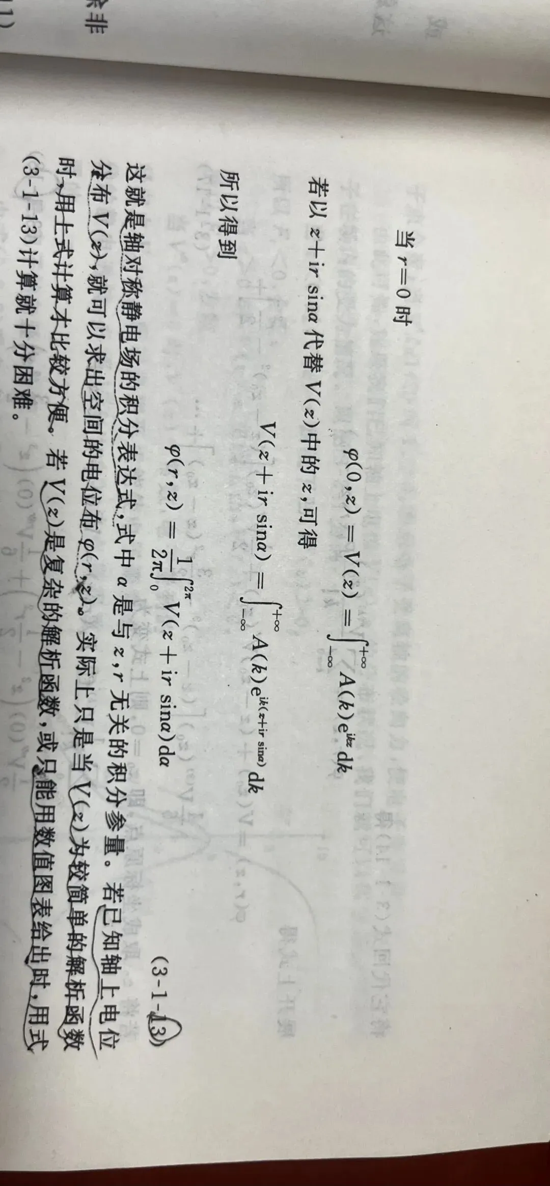 6、如果想决定离轴较远处的场分布,谢尔赤公式不方便,因为级数收敛很慢,此时改换用轴对称静电场的积分表达式。(参考图式)