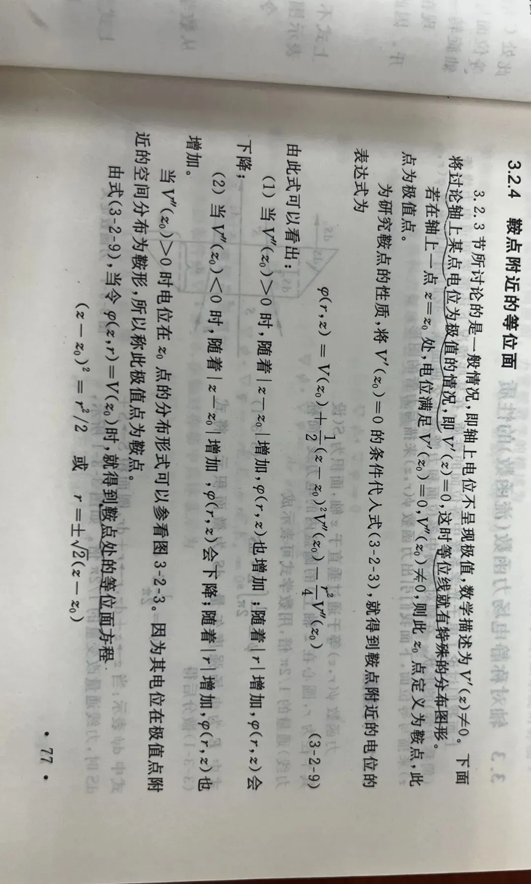 除以上讨论的一般情况外,在此讨论轴上电位呈现极值的情况,这时等位线就有特殊分布的图形;鞍点就是极值点,极值点就是鞍点。(参考图式)