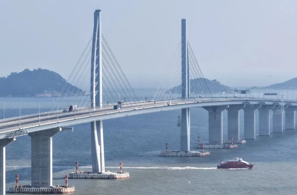 2025年10月19日,客船驶过港珠澳大桥九洲航道桥(无人机照片)。新华社记者 邓华 摄
