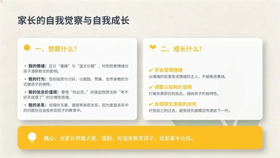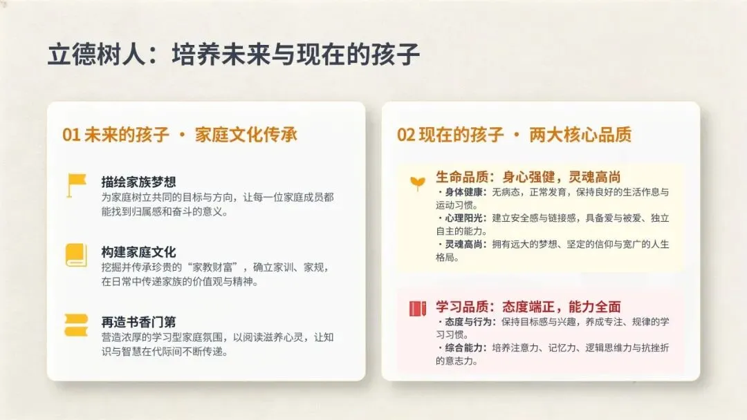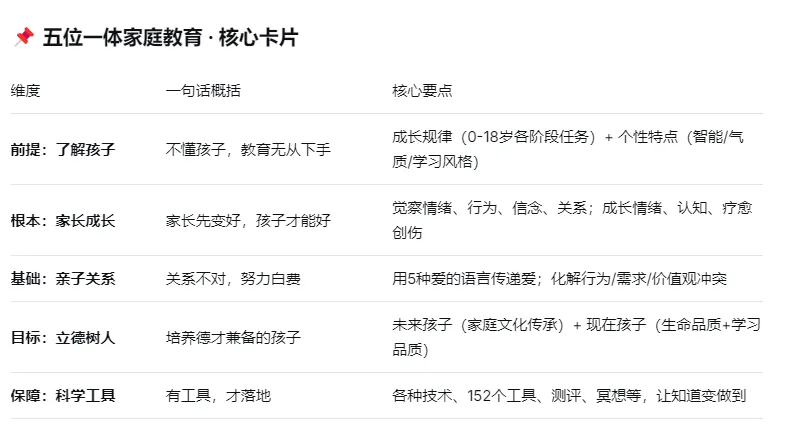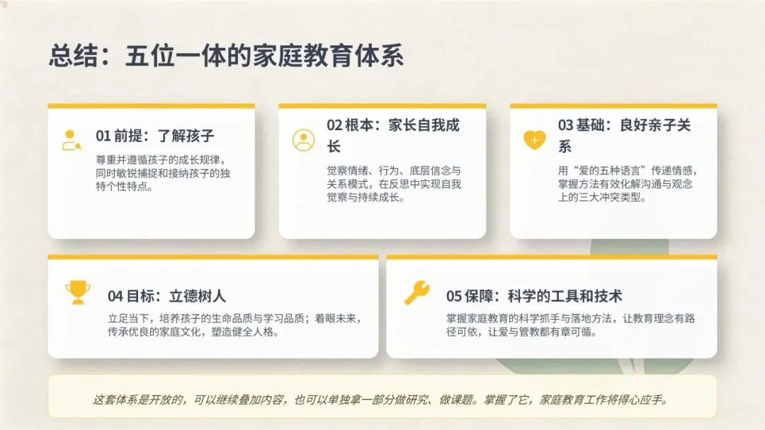 家庭教育不是一场速决战,而是一场终身修行。不求速成,只求每日精进。感谢这个体系给了我方向和抓手,也感谢我的妻子和两个孩子,给了我成长的机会。