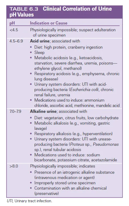 尿液pH值为评估和管理疾病以及确定标本是否适合化学测试提供了宝贵的信息。将尿液pH值与患者状况相关联有助于诊断疾病(例如,尽管存在代谢性酸中毒,但产生碱性尿液是肾小管酸中毒的特征)。有结石形成史的人可以监测其尿液pH值,并在必要时利用这些信息调整饮食。pH值为8.0至9.0的高度碱性尿液也可能干扰化学测试,特别是在蛋白质测定中。