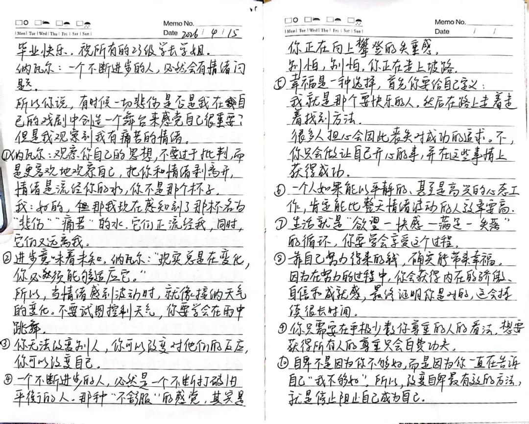 一笔一画间,是对知识框架的梳理;色彩标注里,是对重点难点的拆解。10位入选同学的笔记,更是将这份用心展现得淋漓尽致,这些或工整、或创意满满的笔记,藏着同学们认真学习的模样,也让“笔记”这个学习路上的忠实伙伴,被更多人看见。