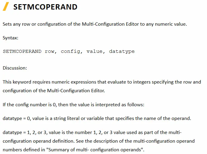 SETMCOPERAND row, config, value, datatype