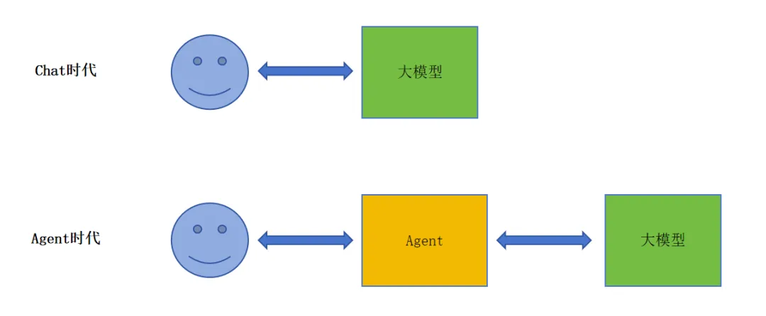 如上图所示,以后,除了人与大模型之间的问答式交互,可能更为复杂的一些任务,都需要借助Agent来实现人与大模型之间的多轮复杂任务交互,尤其是需要多层记忆,借助数据库的场景,就必须依赖Agent了。