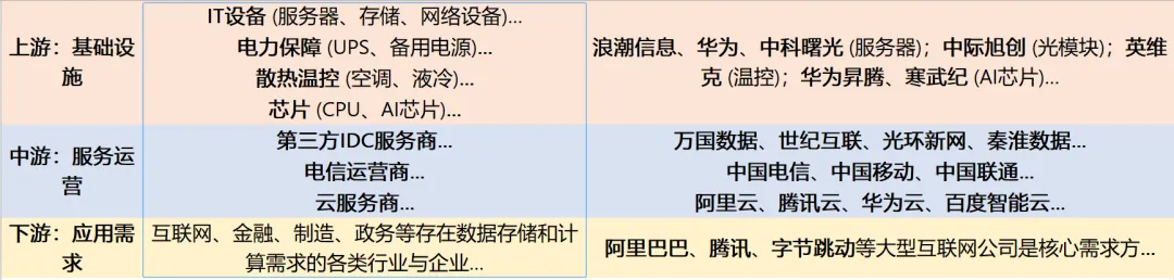 【智算中心(AIDC)建设与运营商】随着AI大模型发展,专门为AI训练和推理设计的智算中心需求或激增...【核心硬件及技术服务商】算力底座的建设者或直接受益于资本开支扩张...【拥有核心区位优势的第三方IDC】在一线城市及周边拥有稀缺土地和电力资源的服务商,壁垒或较高...