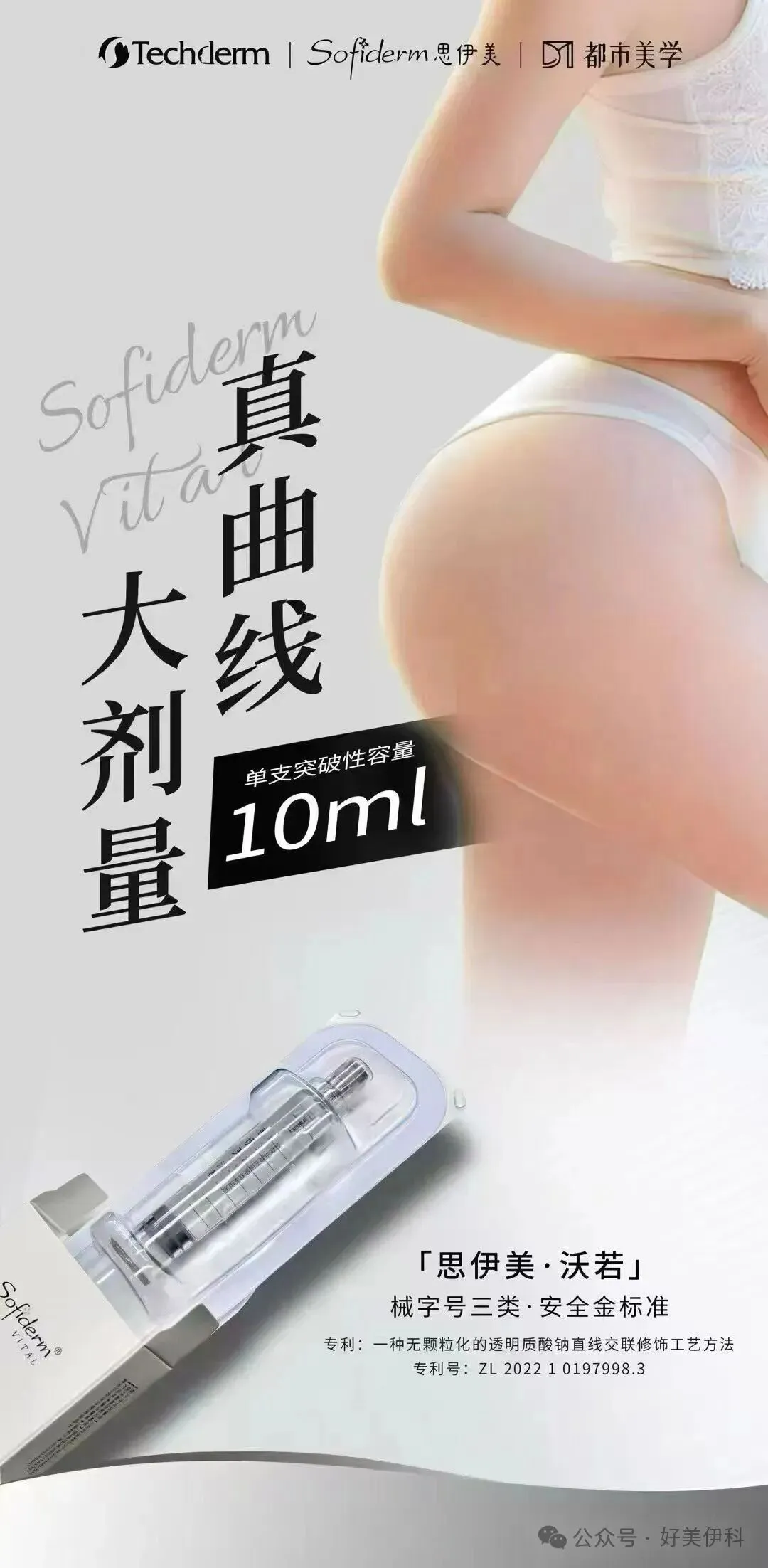 思伊美沃若大量用于手部抗衰,身体丰臀,丰胸,是目前少有的安全型械三大容量丰体玻尿酸
