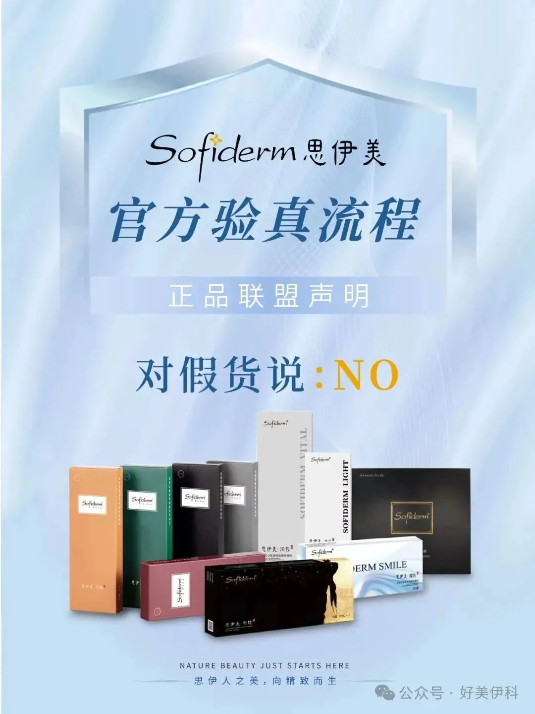 思伊美®Sofiderm是杭州科腾生物旗下的玻尿酸品牌,目前已在欧盟、英国、俄罗斯、巴西、中国等30多个国家注册成功,远销100多个国家和地区,出口销售超百万支。2021年3月18日,Sofiderm®思伊美玻尿酸科腾正式获得国家药监局批注上市,其采用独特专利加持的MCLPE多相混合衔接交联技术,可以将高交联效能和高纯度的透明质酸钠结合起来达到3D效果,针对不同分子粒径和部位需求,总共有5款不同的产品,分别是Lines至润、Derm至柔、Deep至盈、Plus至缇和Sub-Skin至极。产品优势