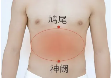腹胀指从鸠尾穴到神阙穴这段之间(中焦)胀闷不适。