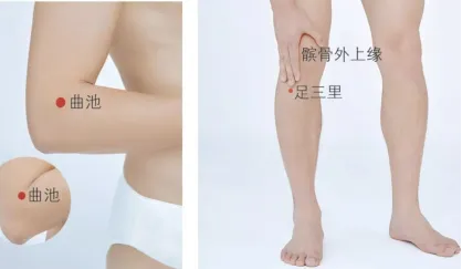 (3)取穴:曲池或足三里穴附近寻找阿是穴。