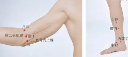 (3)取穴:曲泽或曲泉穴附近寻找阿是穴。