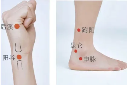 (3)取穴:后溪或申脉穴附近寻找阿是穴。