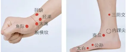 (3)取穴:太渊或商丘穴附近寻找阿是穴。