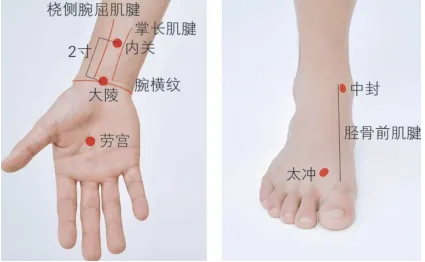 (3)取穴:大陵或中封穴附近寻找阿是穴。