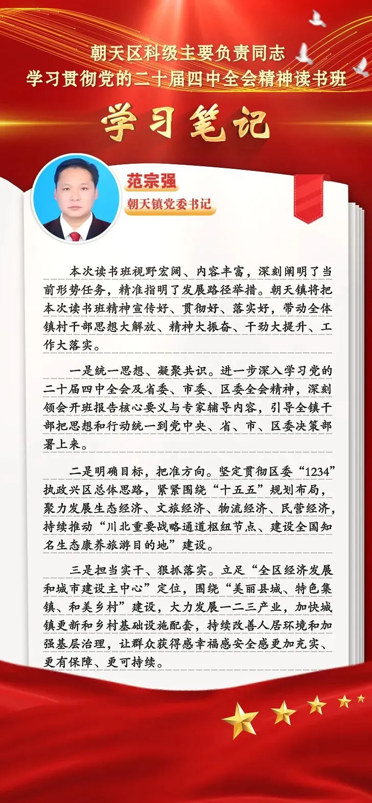 凝心铸魂强思想,深学细悟启新程!3月25日至3月28日,朝天区科级主要负责同志学习贯彻党的二十届四中全会精神读书班举办。