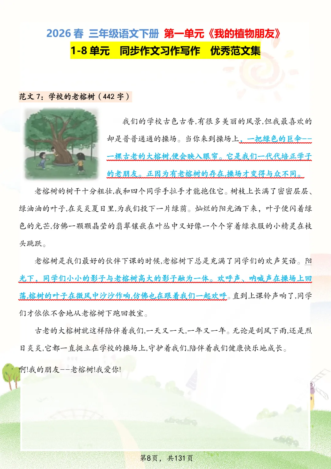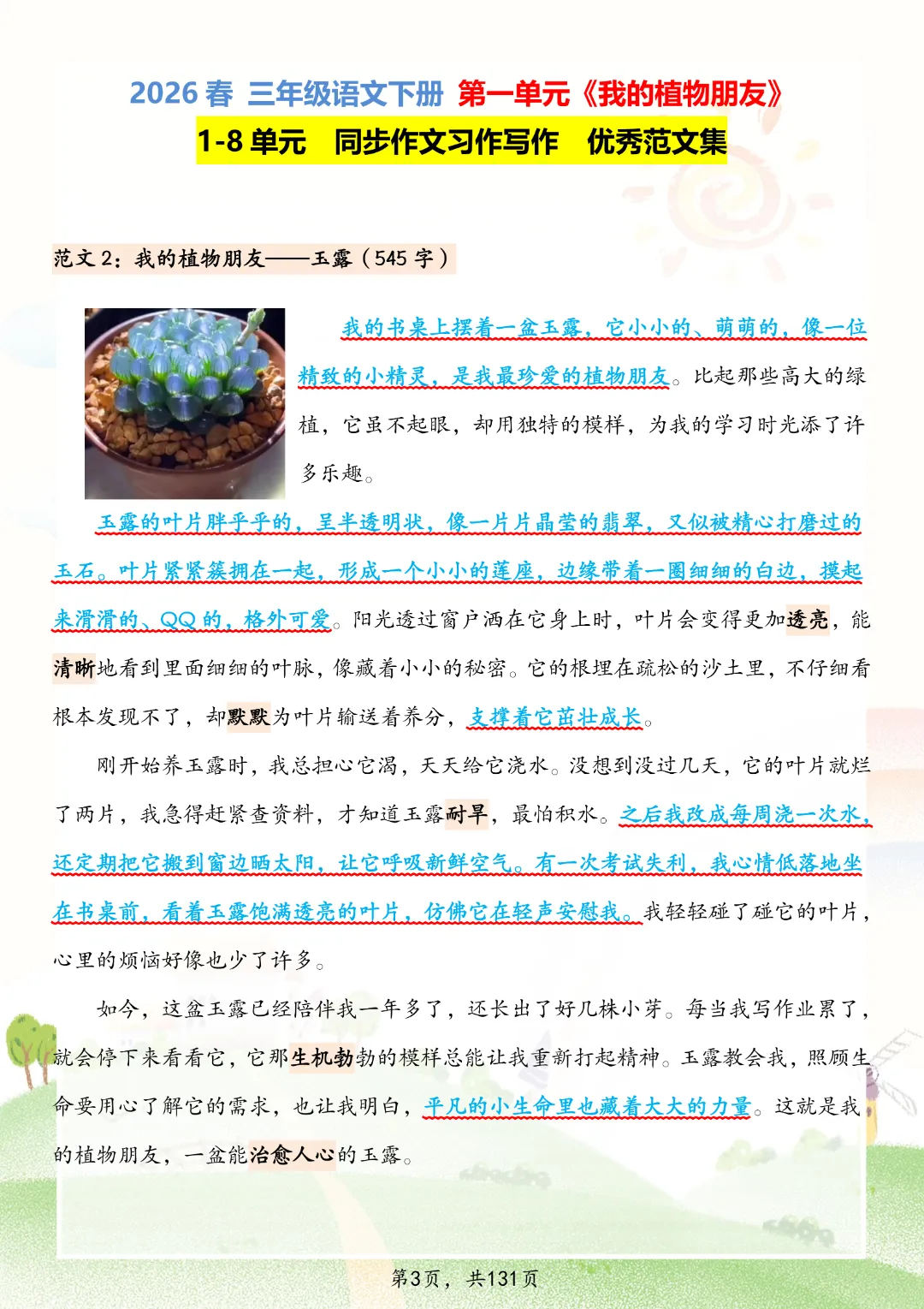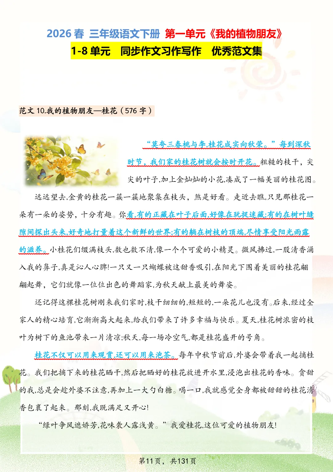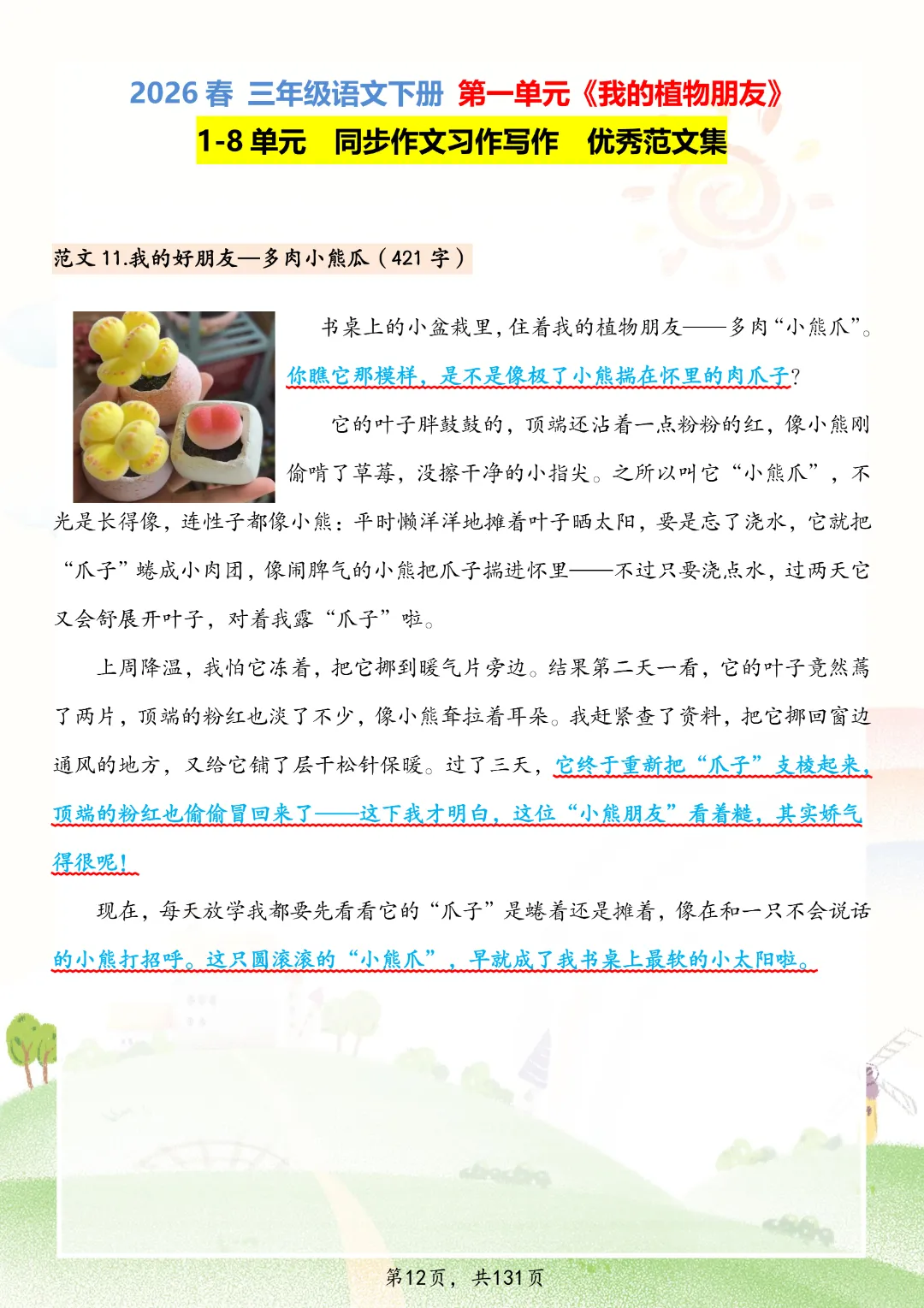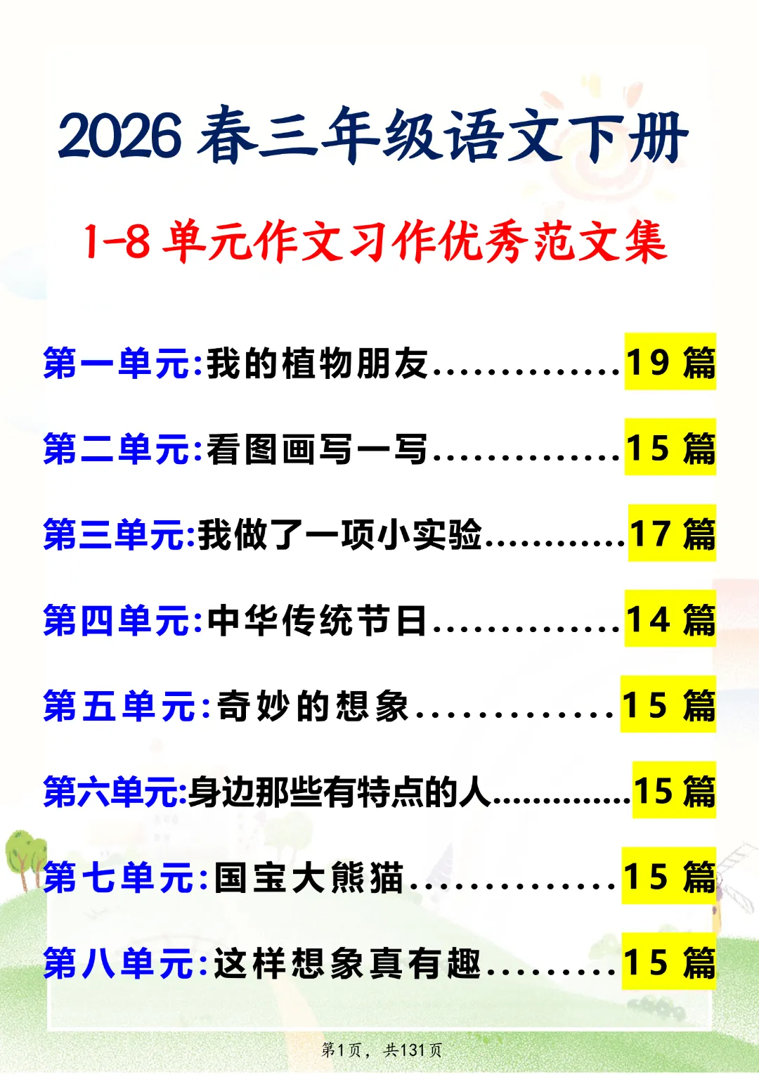 26春三年级下册语文《1-8单元作文优秀范文文集汇总共131页》高清完整电子版可打印