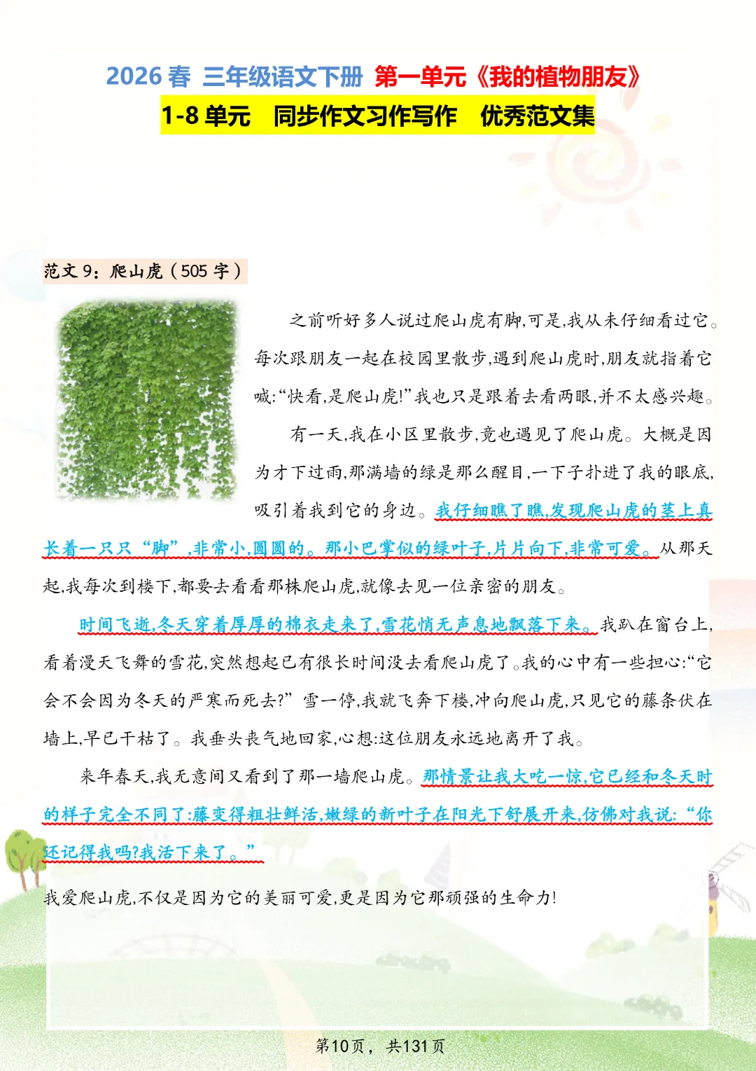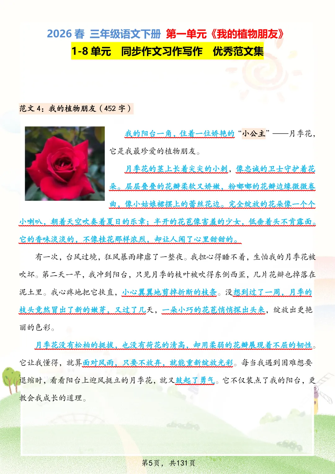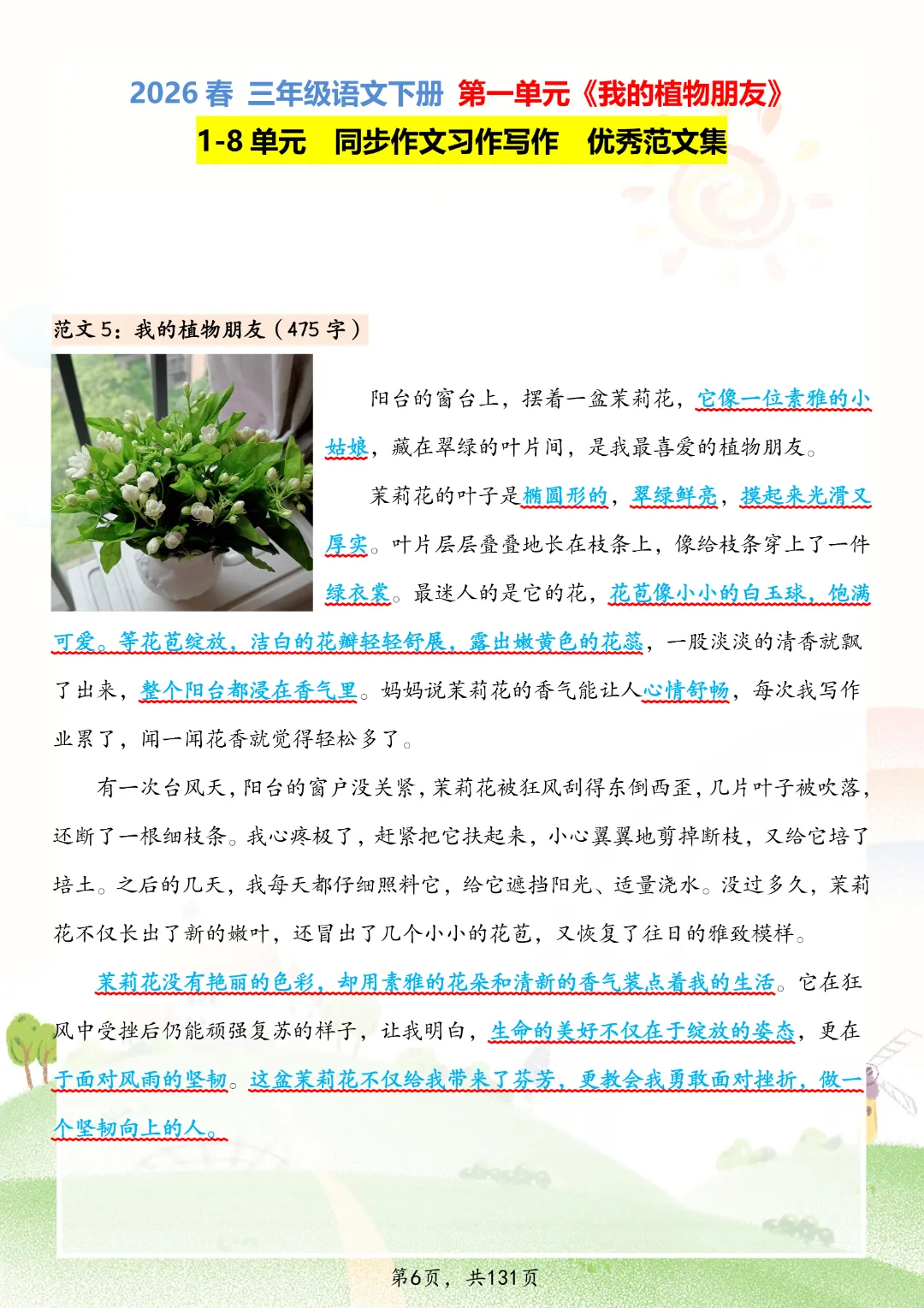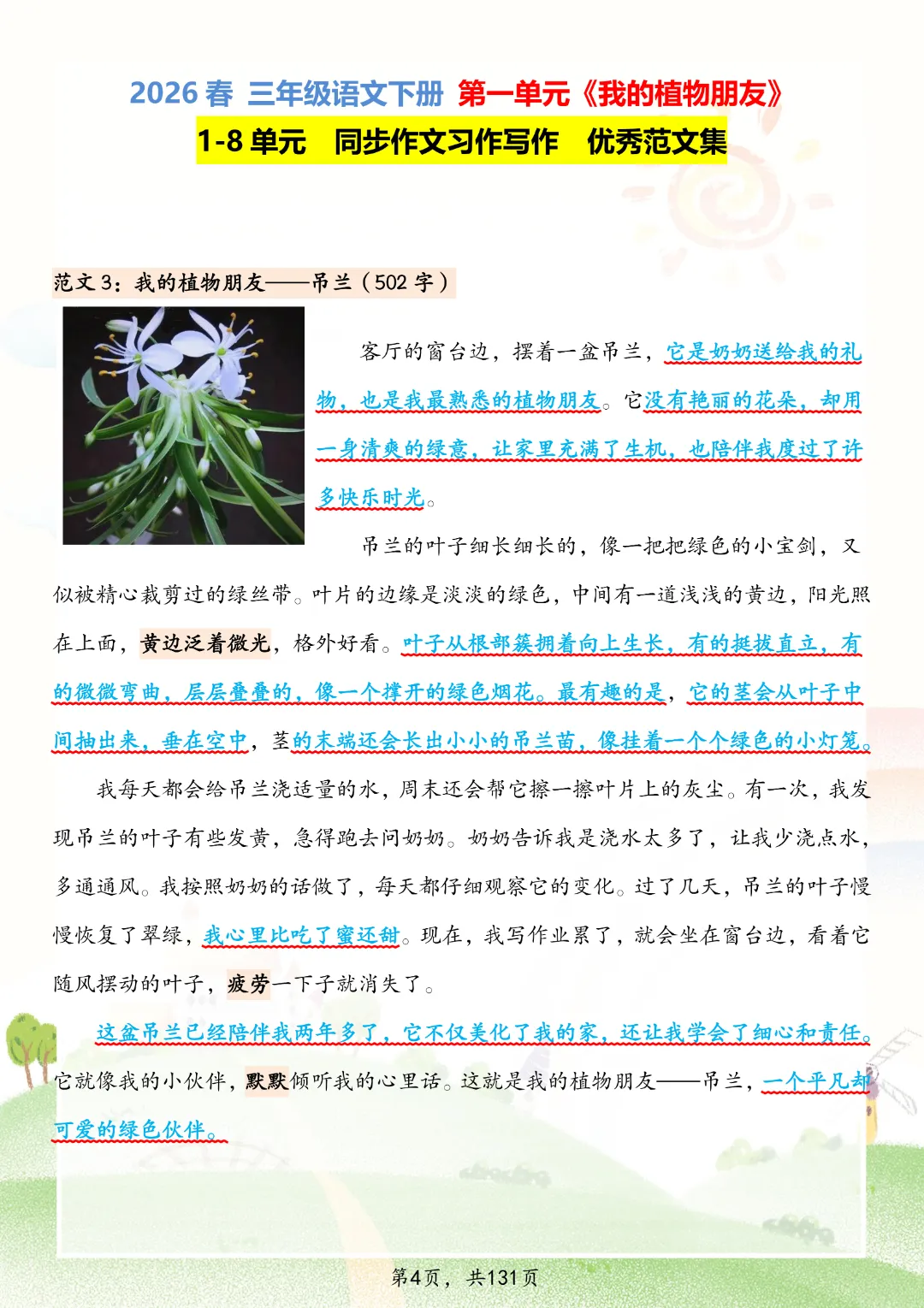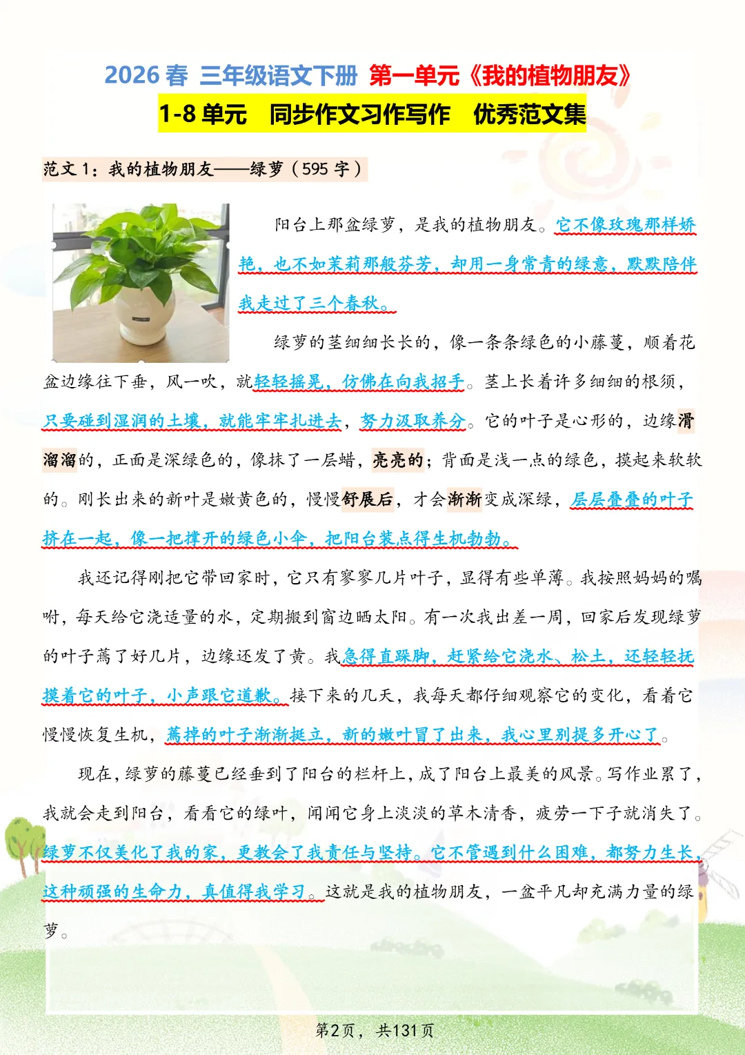 26春三年级下册语文《1-8单元作文优秀范文文集汇总共131页》高清完整电子版可打印