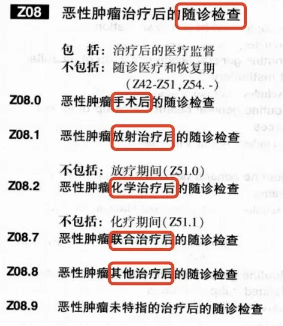 第六十六条 符合入院标准及诊疗规范的恶性肿瘤治疗后的随诊检查,主要编码Z08(恶性肿瘤治疗后的随诊检查)。