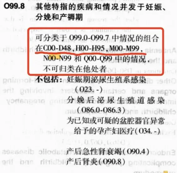 第七十三条 妊娠、分娩及产褥期伴有肿瘤时,选择妊娠、分娩及产褥期并发肿瘤(O99.8)作为主要诊断,附加第二章肿瘤作为其他诊断。
