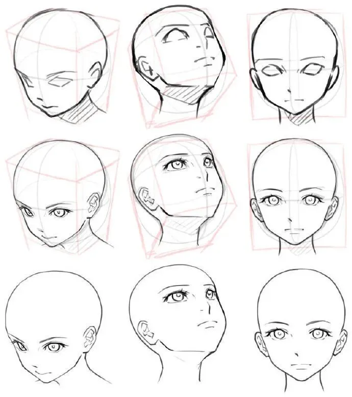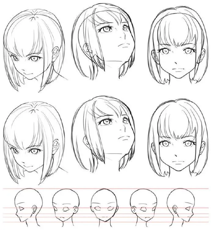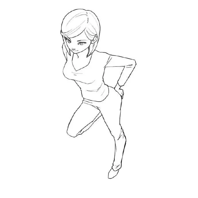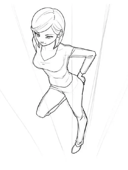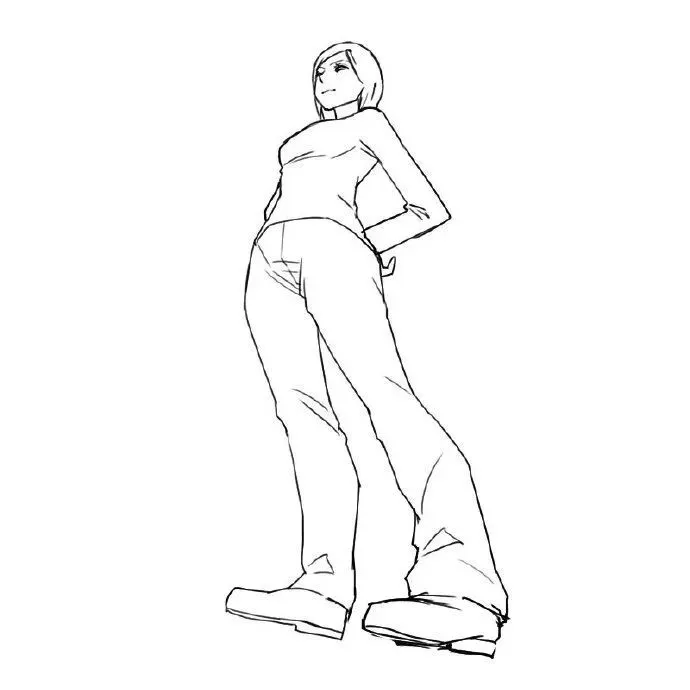 参考:仰视时,人物下巴轮廓清晰,额头被压缩。